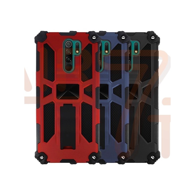 Capa Xiaomi Redmi 9 azul e preta ultra resistente com cantos reforçados, com suporte e íman.
