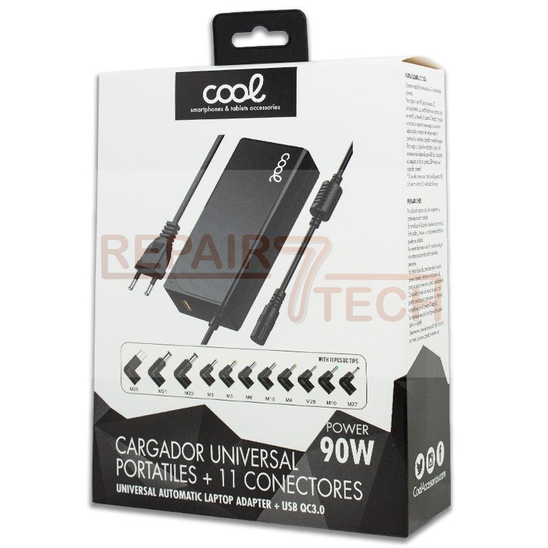 Carregador universal portátil 90W COOL + 11 conectores (USB QC 3.0)