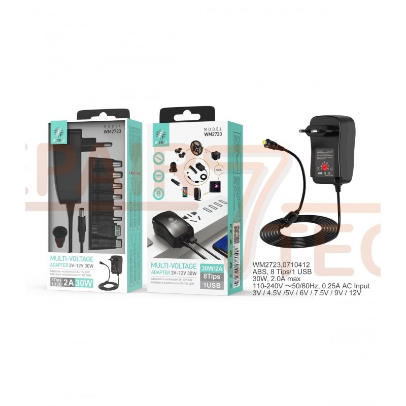 Carregador Universal 8 Adapatdores 1 Micro USB 3V-12V 30W