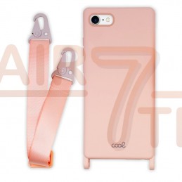 Capa Iphone 7 / 8 / SE 2020 Em Silicone Rosa Com Correia