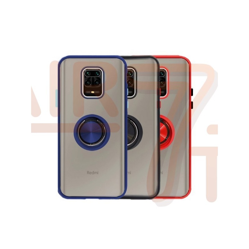 Capa Xiaomi Redmi Note 10 / Note 10S com aro preto e botões vermelhos com íman e suporte.